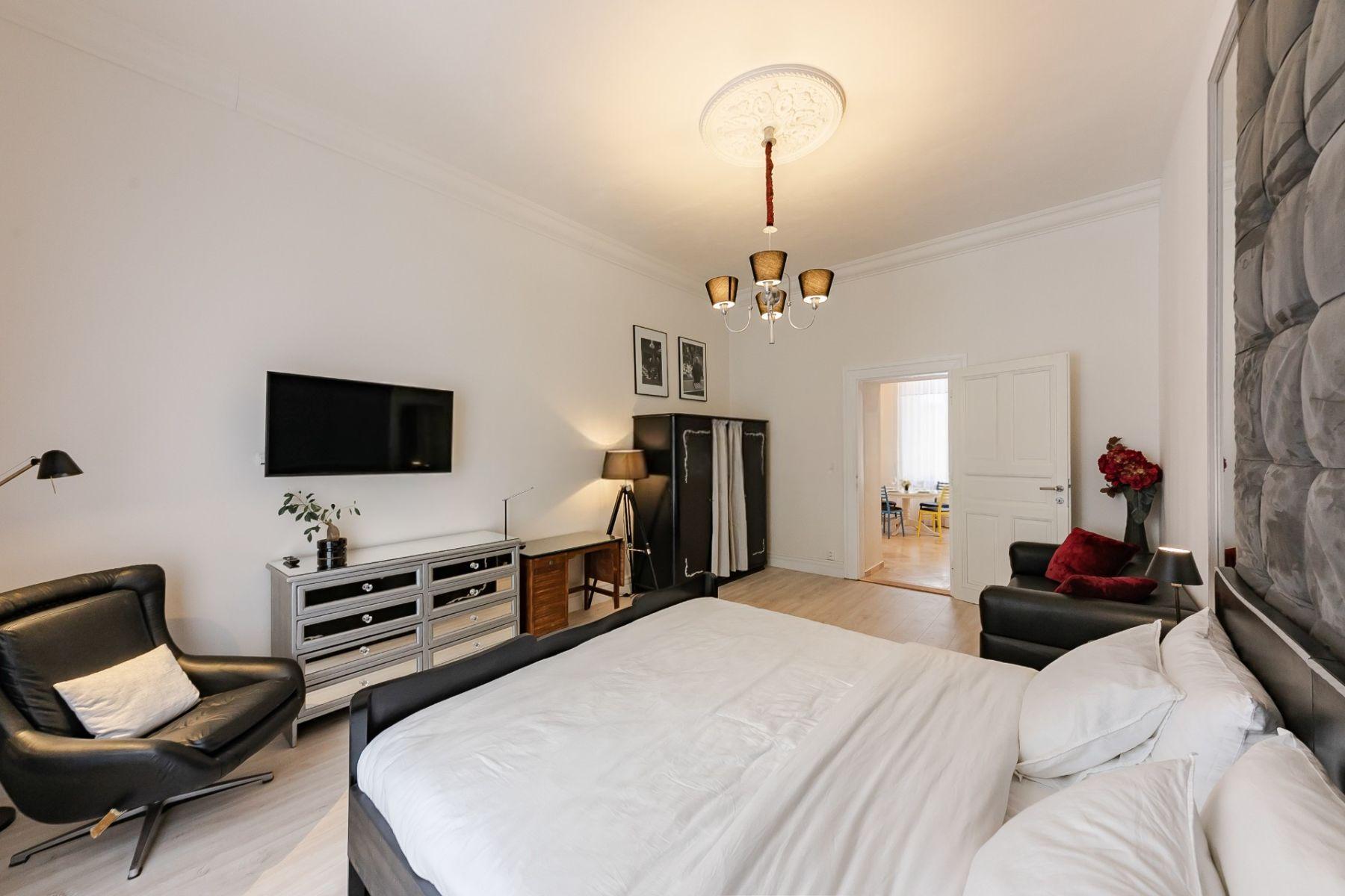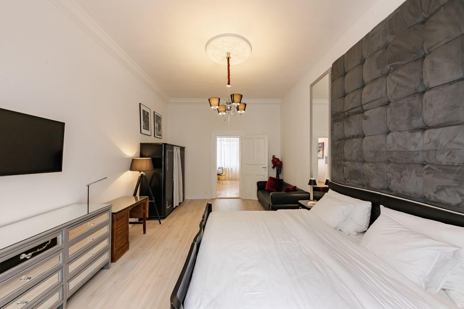 Студия в стиле Art Deco с лифтом и рецепцией, 2 минуты от метро, с обстановкой и бытовой техникой. Высокие потолки, деревянные полы. Рядом рестораны, магазины, банки, университеты. Кухня с обеденной зоной, спальня, большая кровать, Smart TV, рабочий стол, шкаф, диван, стол. Ванная комната с душем, умывальником, туалетом. WiFi, утюг, гладильная доска, сушилка, пылесос. Первый этаж.