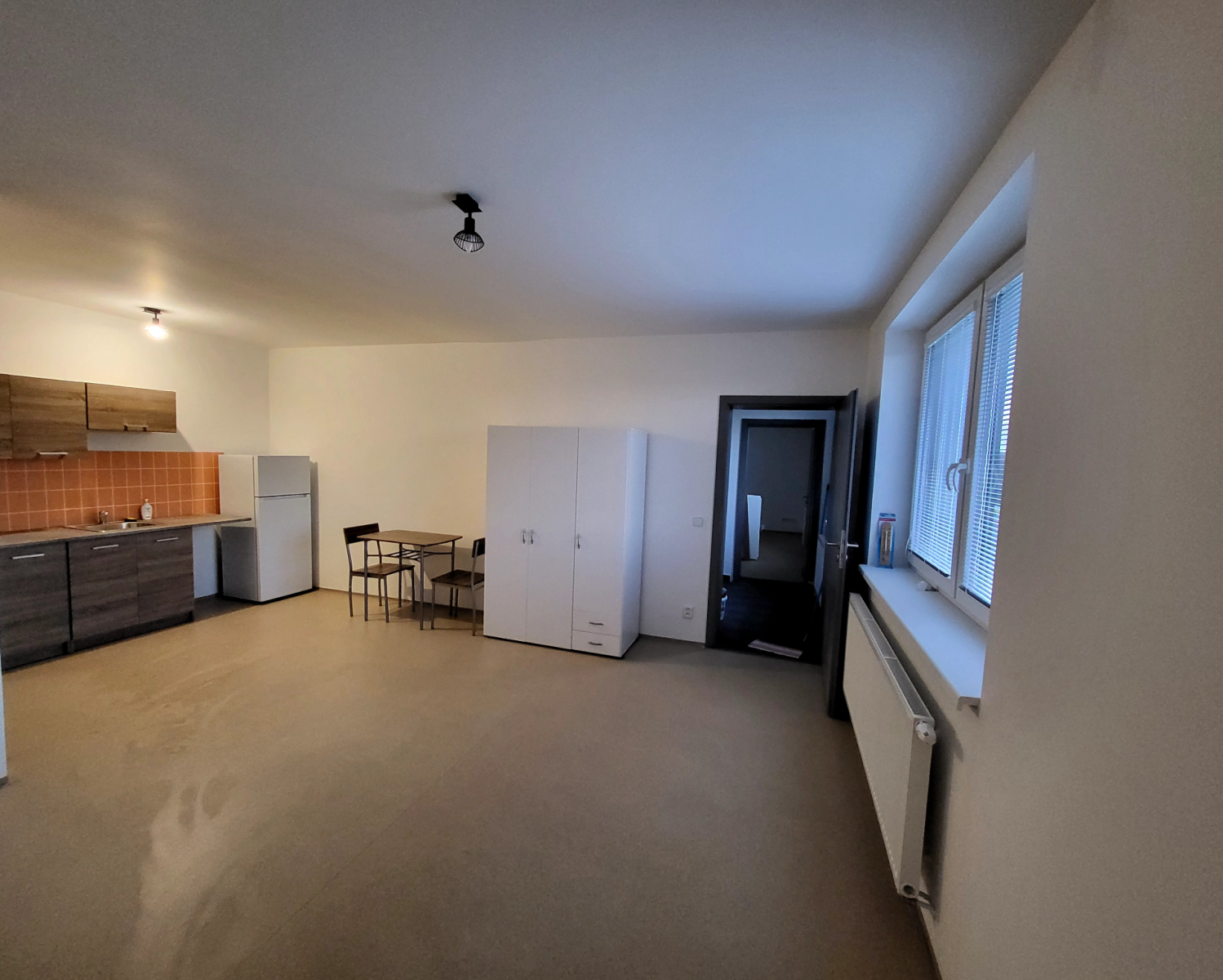 Современная 1+kk квартира в новостройке, 28 м², частично меблирована. Удобное расположение на 2 этаже из 3. Зеленая зона вокруг здания, парковка. Подходит для одного человека. Комфортное и современное жилье.