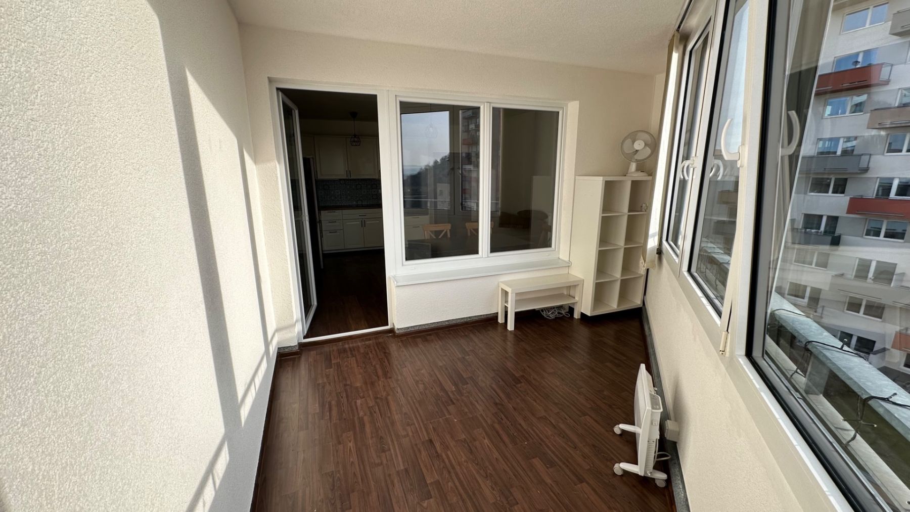 Светлая 2+kk квартира (60 м²) с большой лоджией 18 м² в новостройке с лифтом. Просторная гостиная с кухней, две застекленные лоджии, отдельная спальня, рабочее помещение, подвал, гараж. Тихий район, удобное сообщение: 5–7 мин до метро Háje на автобусе, 20 мин до метро Skalka. Готова к заселению.